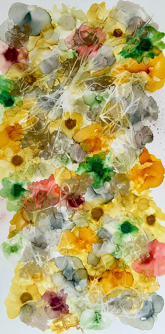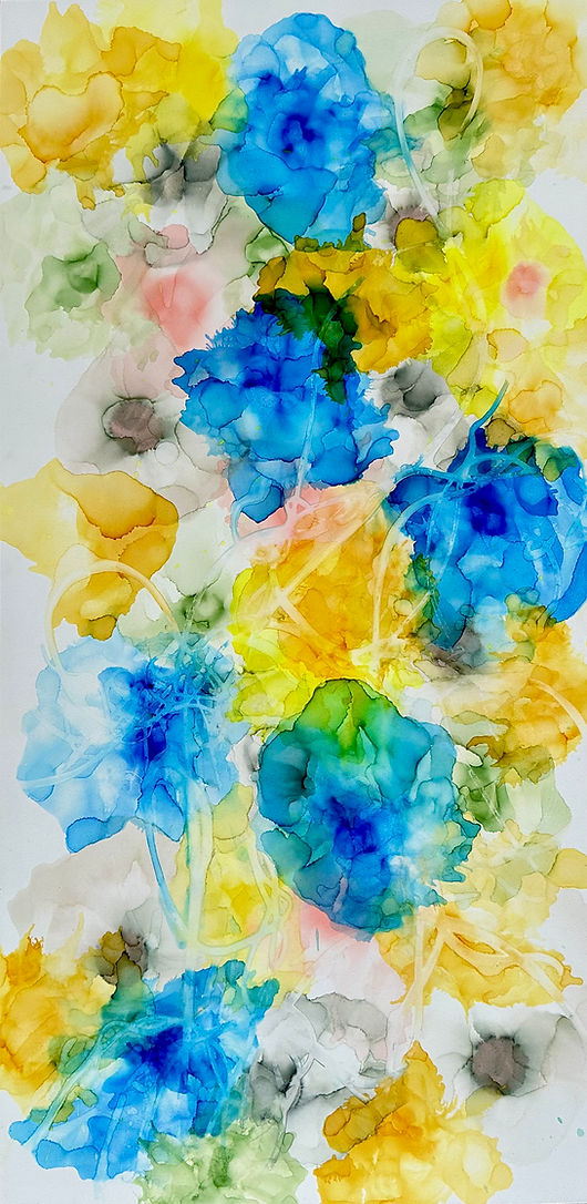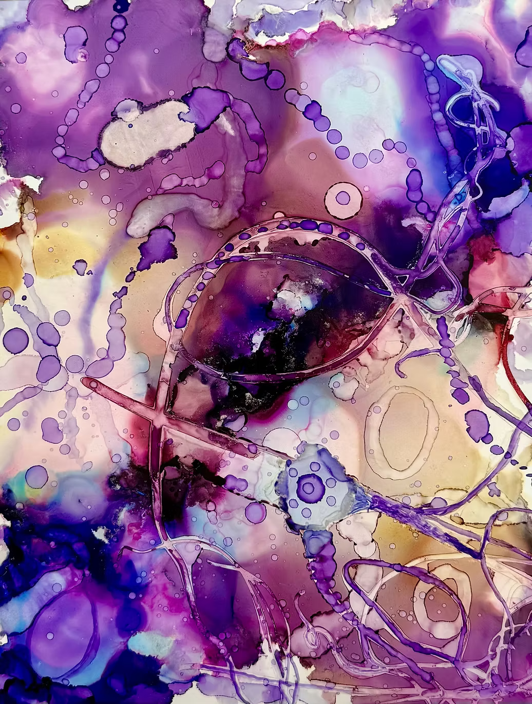 Her work unfolds in the charged space between control and surrender, where alcohol ink behaves as both substance and impulse. Color seeps, collides, and evaporates, leaving behind gestures that feel suspended in motion. Edges blur into atmosphere; density gives way to translucence. Each composition balances intention with chance, allowing material to assert its own logic. Rooted in the lineage of abstraction, the practice becomes a meditation on movement, saturation, and the quiet tension between structure and release.